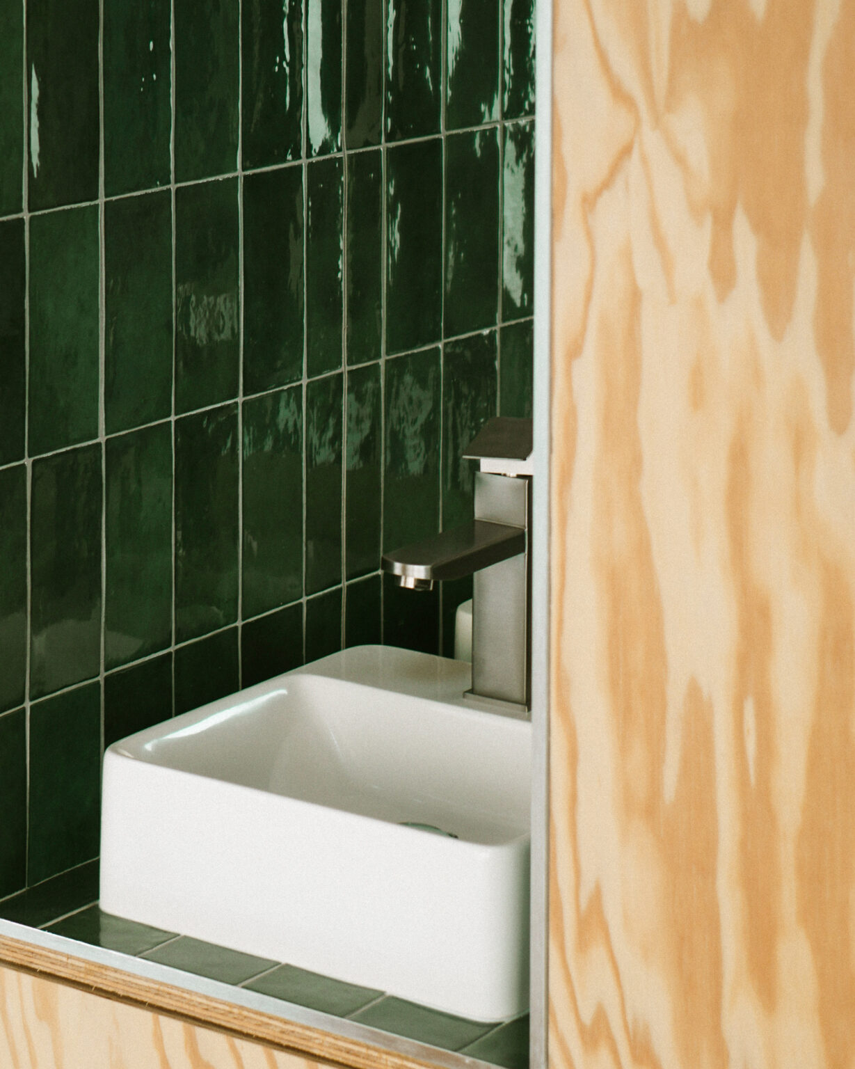 Un grand meuble central est conçu comme une interface entre les différents espaces. Il organise les circulations, structure les zones de travail et offre des capacités de rangement importantes, réduisant ainsi le besoin de cloisonnement. Le budget restreint a conduit à l’utilisation de placards standards, revalorisés par des interventions sur mesure : portes en pin maritime, poignées creusées dans le bois et portes à galandage spécialement intégrées au mobilier.