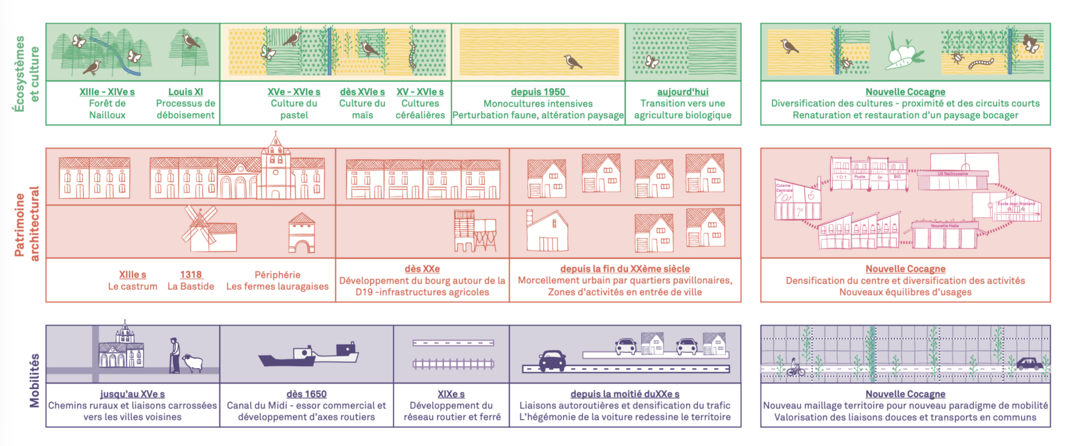 La proximité de la métropole toulousaine, intensifiée par la construction de l’autoroute A66 ont fait naitre à Nailloux des opportunités foncières et immobilières fortes, qui ont généré une croissance rapide et peu maitrisée par lotissements pavillonnaires génériques. Le modèle agricole bocager historique a laissé sa place à des monocultures intensives participant à la dégradation des écosystèmes et à une pollution des sols, des cours d’eau et de l’air.