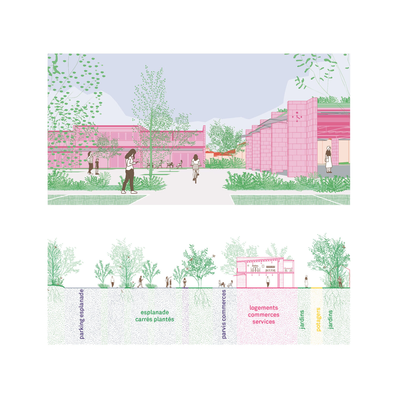 – (Re)lier l’urbain au vivant, en développant une stratégie d’espace public et de paysage globale.